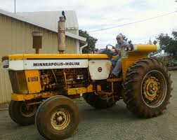 When I started working for Uncle Ed on the farm he had a nice powerful Minneapolis-Moline tractor. They were painted yellow. I forget now the number series. They were affectionately called Mini-Mo's and were bought out by White in 1963 and the name was dropped in 1974. Below is what Ed's tractor looked a lot like.